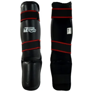Ochraniacze Profight właściwie chronią piszczele, oraz śródstopie przed urazami. Wyposażone w grubą (ok.20 mm) i właściwie sztywną warstwą ochronną zbudowaną z miękkiej pianki EVA. Ochraniacze zostały zbudowane ze skóry syntetycznej, są prawidłowo profilowane. Specyfikacja: ochraniacze mocowane są na czarnych gumach, które zapinane są na rzep osłona stopy odpinana jest na rzep materiał: