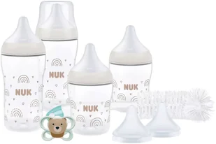 NUK Perfect Match Perfect Start Zestaw butelek dla niemowląt | 0-6 m | 4 x butelki antykolkowe (150 ml, 260 ml), 2 x smoczki, 1 x smoczek Perfect Match Air, 1 x szczotka do butelek | Tęczowy | 8 szt