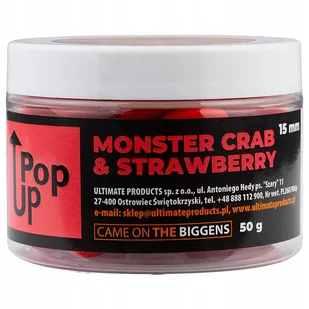 KULKI POP UP ULTIMATE PRODUCTS CRAB STRAWBERRY Kulki Pop Up Ultimate Products Crab Strawberry Producent: Ultimate Products, Symbol: M5903855430433 Kulki Ultimate Products Monster Crab Strawberry Pop-ups 15 mm Kulki hakowe zostały stworzone na podstawie bogatych mixów Ultimate. Utwardzone, odporne na ataki drobnicy oraz raków. Posiadają zwiększona ilość aromatów, które długo uwalniając się w wodzie.