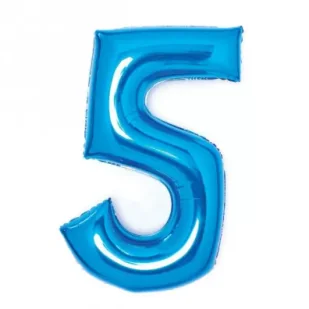 Balon foliowy cyfra 5 niebieski zapakowany 52 cm x 66 cm