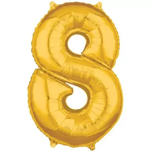 Balon foliowy w kształcie złotej CYFRY 8. Idealny na 8 urodziny lub jako element kompozycji na 18, 80 czy 85 urodziny.
