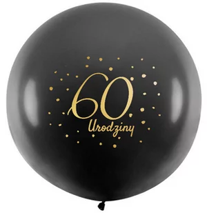 BALON URODZINOWY GIGANT Czarny Balon gigant ze złotym nadrukiem " 60 urodziny". Super ozdoba na imprezę urodzinową lub dodatek do prezentu. Idealnie podkreśla charakter przyjęcia. Nadają się do nadmuchania helem i powietrzem. WYMIARY: