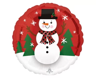 BALON FOLIOWY UŚMIECHNIĘTY BAŁWANEK Rozmiar w calach: 18" Rozmiar w centymetrach: 46 cm Kształt: okrągły Kolor: biały, czerwony, zielony, czarny Nadruk: