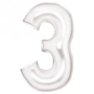 Balon foliowy cyfra 3 satynowa biała 86cm 9917295
