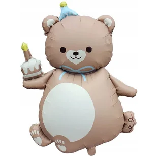 ⭐BALON FOLIOWY MIŚ Z TORTEM NIEDŹWIADEK 66X98CM⭐ Ten balon foliowy o wymiarach 66x98 cm ma kształt uroczego misia o zaokrąglonej sylwetce i przyjaznym, rados...
