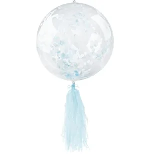 Balon PVC z konfetti i frędzlami 45 cm niebieski