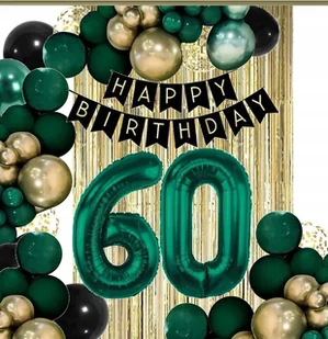 Balony Urodziny Z Kurtyną Dekoracje Kolory Czarny Zielony Złoty 60 Lat