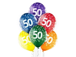 balony z nadrukiem na 50 urodziny - pięćdziesiątka średnica: 12 cali rozmiar w centymetrach: 30 cm opakowanie zawiera: 6 szt. producent: Belbal