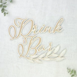 Dekoracja z napisem Drink Bar w rozmiarze ok. 20 x 25 cm. Tektura, której używamy w swoich produktach ma grubość 1,15 - 1,55mm i jest całkowicie bezpieczna w użyciu i w kontakcie z żywnością. Ciemniejsze części projektu to grawer, a drobne przypalenia na krawędziach są normalne i nie stanowią wady produktu.