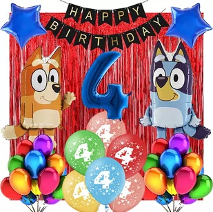 ZESTAW BALONÓW NA 4 URODZINY BLUEY 31 SZT Zestaw składa się z: *kurtyna czerwony deszcz 1x2m-1szt *balon foliowy 24" Bluey figurka -1szt *balon foliowy 24" Bingo figurka-1szt *balon foliowy 18" gwiazda niebieska-2szt *balon foliowy cyfra 4 niebieska 40cm-1szt *balony lateksowe mix kolorów-20szt *balony lateksowe mix z nadrukiem 1-5szt Zamów balony na urodziny w sklepie Towarnafestyny i zyskaj najwyższą jakość i najniższe ceny.