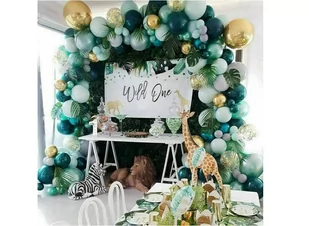 złotych balonów (bardzo dużych) 20 szt. miętowych balonów (średnich) 20 szt. zielonych balonów (średnich) 20 szt. zielono metalicznych balonów (małych) 20 szt. zielonych balonów (małych) 20szt.