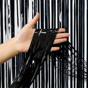 Wymiary: szerokość 100 cm, wysokość 200 cm. Kurtyna, tło do zdjęć. Kolor: czarny. Wykonana z foliowego materiału.