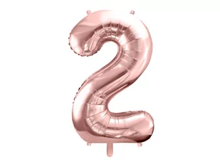 Balon foliowy - różowo-złota cyfra dwa "2", posiada specjalne uchwyty ułatwiające montaż. Idealna dekoracja na urodziny, można komponować z innymi balonami w celu ułożenia konkretnej liczby. Kolor: różowe złoto. Wysokość: 86 cm. Opakowanie: 1 szt.