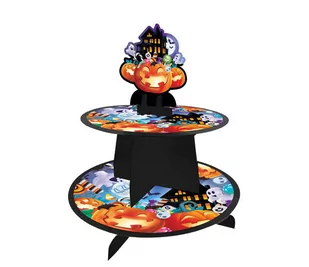 Patera piętrowa do babeczek. Posiada nadruk nawiązujący do Halloween. Wykonana z kartonu. Wymiary: 40 x 30 cm. Do samodzielnego złożenia.