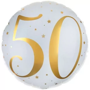 Balon foliowy, 50 urodziny, 14", biało-złoty