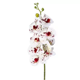 Ozdobny storczyk w białym kolorze to piękna dekoracja, która z pewnością doda elegancji i uroku każdemu wnętrzu. Storczyk znajduje się na długiej gałązce o długości 95 cm, co pozwala na łatwe ustawienie go w dowolnym miejscu. Storczyk został wykonany z wysokiej jakości silikonu, co sprawia, że wygląda bardzo naturalnie i przypomina prawdziwe kwiaty. Biały kolor kwiatów dodaje dekoracji elegancji i stylu, dzięki czemu jest idealnym wyborem do aranżacji wnętrz w różnym stylu. Ozdobny storczyk jest bardzo trwały i odporny na uszkodzenia mechaniczne, co pozwala na długotrwałe użytkowanie.