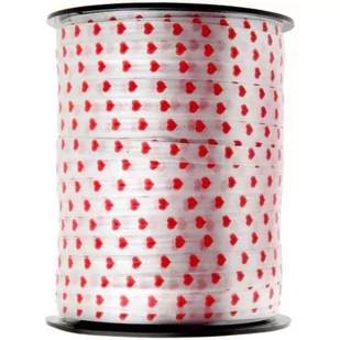 tasiemka w kolorze białym w czerwone serduszka posiada szerokie zastosowanie w dekoracji szerokość: 7,5 mm długość: 500 cm