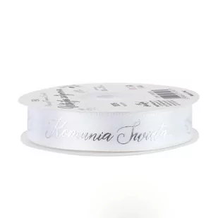 Ta piękna wstążka satynowa ozdobna to idealny dodatek do dekoracji podczas uroczystości pierwszej komunii świętej. Wstążka jest wykonana z wysokiej jakości materiału o eleganckim białym kolorze, który symbolizuje czystość i niewinność. Na całej długości wstążki znajduje się srebrny elegancki nadruk "Komunia Święta", który dodaje wyjątkowego blasku i podkreśla duchową atmosferę tego ważnego wydarzenia. Nadruk jest starannie wykonany, aby zapewnić trwałość i estetyczny wygląd. Wstążka ma imponującą długość 20 metrów, co daje Ci dużo materiału do kreatywnego wykorzystania.