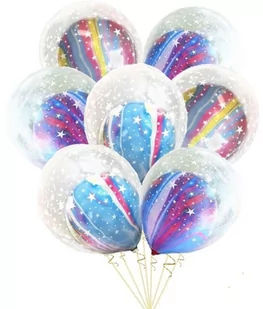 ZESTAW 7 SZTUK BALONY NA PRZYJĘCIE URODZINOWE ZESTAW BALONÓW 7 SZTUK Motyw: kolorowe wzory Opis produktu: Zestaw składający się z 7 sztuk wytrzymałych balonów lateksowych, Balony przezroczyste z drugim balonem w środku kolorowym we wzory, Świetnie sprawdzą się jako dekoracje na przyjęciu urodzinowym, Balony z pewnością zwrócą uwagę każdego dziecka jak i dorosłego, Mogą być napełnione powietrzem lub helem, Na pozostałych aukcjach jeszcze więcej wzorów i kolorów balonowego szaleństwa : ) Balony z motywem podwójnego balona z zewnątrz balon przezroczysty w gwiazdki w środku znajduje się drugi balon w kolorowe wzory. Sprawdzą się jako dekoracje na przyjęciu urodzinowym.