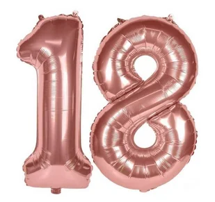 Zestaw balonów przedstawiających liczbę 18. Zawiera: balon cyfra "1", balon cyfra "8". Kolor: różowe złoto. Wysokość balonów wynosi ok. 100 cm (40"). Idealny...