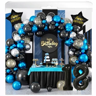ZESTAW BALONY NA 18 URODZINY CZARNE NIEBIESKIE SREBRNE ZŁOTE OSIEMNASTKA