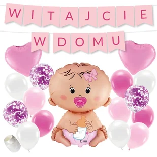 Zestaw WITAJCIE W DOMU - różowy + bobas różowy BALONY na powitanie dziecka WITAJ