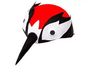 CZAPKA DZIĘCIOŁ RUCHOME OCZY CZARNO-CZERWONA