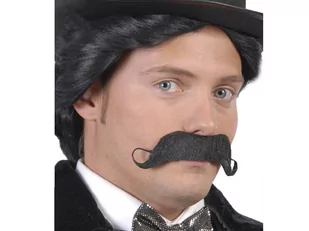 Podkręcone czarne wąsy w stylu angielskim, samoprzylepne. Wymiary: 10,5 x ok 3,5 cm. Opakowanie: 1 szt.