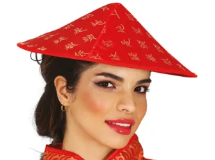 Czerwony japoński kapelusz z haftem. Opakowanie: 1 szt.