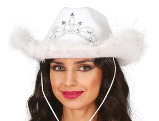 Kapelusz Kowbojski z Tiara – Idealny Dodatek do Stroju Księżniczki z Dzikiego Zachodu Przenieś się w świat westernów i bajek jednocześnie! Nasz biały kapelus...