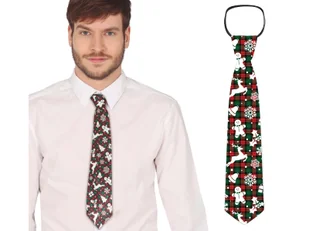 Krawat świąteczny z bożonarodzeniowym wzorem. Długość: 45 cm. Opakowanie: 1 szt.
