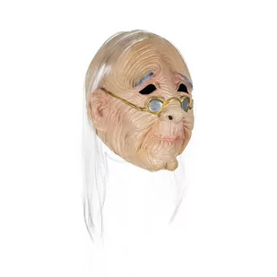 Maska starszej kobiety w okularach, zakrywająca całą głowę i część szyi. Kobieta ma długie, siwe włosy. Dodatkowo na nosie namalowane okulary, dzięki czemu wygląda bardzo realistycznie. Maska będzie świetnym pomysłem na przebranie, gwarantujemy, że nie spotkasz na imprezie drugiej tak samo przebranej osoby jak Ty! Otwory do patrzenia są wycięte w oczach. Dodatkowo maska wyposażona jest w otwory do łatwiejszego oddychania umieszczone w nosie, przez co również lepiej słychać osobę, która ją nosi.