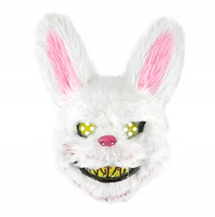 Maska Halloween Królik 25x32cm IMPREZA HALLOWEEN STRASZNE DEKORACJE Puchata maska w kształcie królika to idealny dodatek na Halloween! Miękka i komfortowa, d...