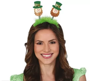 Opaska wykonana z tworzywa sztucznego. Do opaski przyczepione dwie sprężynki, do których zamocowano zielony puszek i główki Św. Patryka.