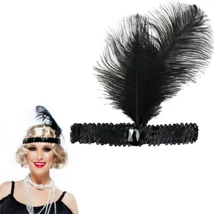 Opaska Z Piórem Retro Lata 20 Cekiny Kabaret CZARNA OPASKA Z PIÓREMCzarna, cekinowa opaska z piórem, to jeden z najpopularniejszych elementów kabaretu dla 20...