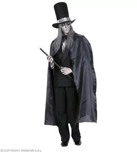 PELERYNA CZARNA 130CM; Peleryna koloru czarnego, Z kołnierzem, zawiązywana pod szyją. Peleryna ma 130 cm długości.