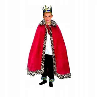 PELERYNA KRÓLA STRÓJ KRÓL 134/140 Strój peleryna króla W skład stroju wchodzi czerwona peleryna obszyta tkaniną a'la lampart Przebranie to świetnie się sprawdzi podczas przedstawień, Jasełek czy też zabaw karnawałowych. Rozmiar 134/140 Dł. całkowita peleryny ok. 78 cm Strój można uzupełnić o prawdziwe atrybuty królewskie takie jak berło i korona (dostępne w naszych innych ofertach)