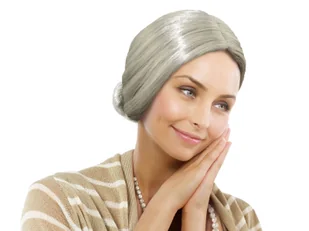 Peruka Babcia z siwymi włosami z kokiem, idealny dodatek do stroju. Opakowanie 1 szt.