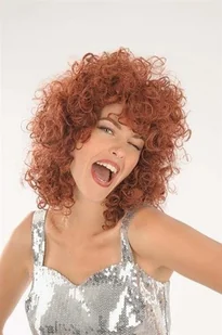 Peruka w kolorze: rudym. Włosy kręcone. Efekt puszystej fryzury. Peruka mocowana na elastycznej siatce. Rozmiar uniwersalny.