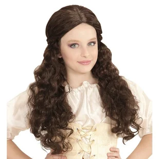 Peruka dziecięca średniowieczna dama brązowa Peruka dziecięca średniowieczna dama dworu. Włosy długie, kręcone w kolorze brązowym. Zdobione delikatnym upięci...