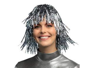 Peruka foliowa w kolorze srebrnym. Rozmiar uniwersalny. Opakowanie: 1 szt.