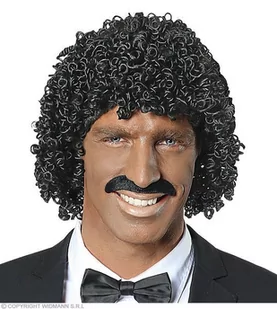 PERUKA JAMAJKA MICHAEL; Peruka w kolorze: czarnym. Włosy kręcone, ułożone. Peruka mocowana na elastycznej siatce. Włosy są błyszczące, wyglądają naturalnie. Stylizowane na Michaela Jacksona. Rozmiar uniwersalny.