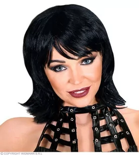 PERUKA POP PUNK; Peruka w kolorze czarnym z grzywką. Włosy podkręcone na końcach. Mocowana na elastycznej siatce. Rozmiar uniwersalny.