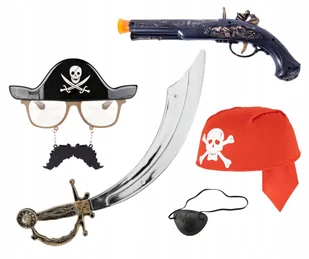 PIRACKIE REKWIZYTY DO FOTOBUDKI SZABLA OPASKA CZAPKA OKULARY STRZELBA PIRAT