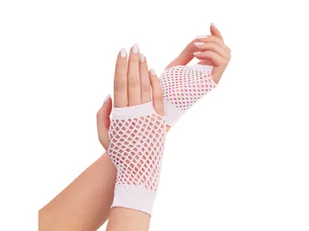 Rękawiczki neonowe kabaretki bez palców w kolorze białym.