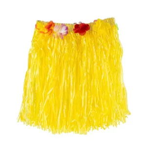Spódnica hawajska żółta Spódnica hawajska Kolor: żółty Długość 40 cm Obwód: ok. 55-95 cm Zapinana na rzep Posiada gumki w pasie Syntetyczna Liczba sztuk: 1