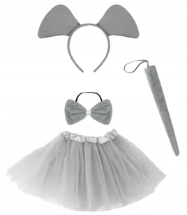 STRÓJ SŁONIK SŁOŃ PLUSZOWA OPASKA Z USZAMI OGON MUSZKA + SPÓDNICZKA TUTU