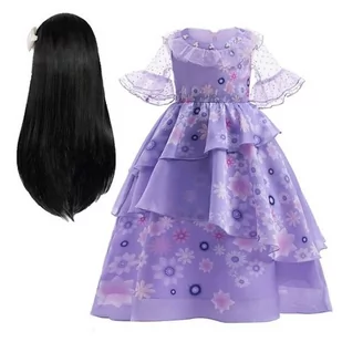 Umie wyczarować piękne kwiaty i rośliny. Sukienka wykonana z dokładnością i prostotą. Całość pięknie się prezentuje, a fioletowy kolor sprawia że przebranie jest wyjątkowe. Sukienka wykończona falbanami, zawierająca autentyczne detale i wzory filmowe. W zestawie z prześliczną sukienką otrzymacie Państwo perukę Isabel: