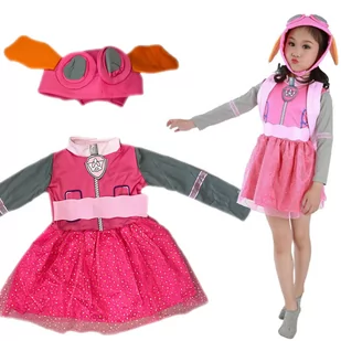 długość rękawa: 37cm długość całkowita: 56 cm główne cechy produktu: strój skye rozmiar 110-116 /3-5 lat spódniczka z nadrukiem czapka idealny zestaw na bal przebierańców wysoka jakość wykonania