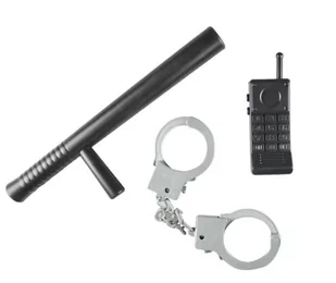 Zestaw policjanta pałka kajdanki krótkofalówka Zestaw policjanta dla dzieci W komplecie pałka, kajdanki i krótkofalówka Materiał: plastik